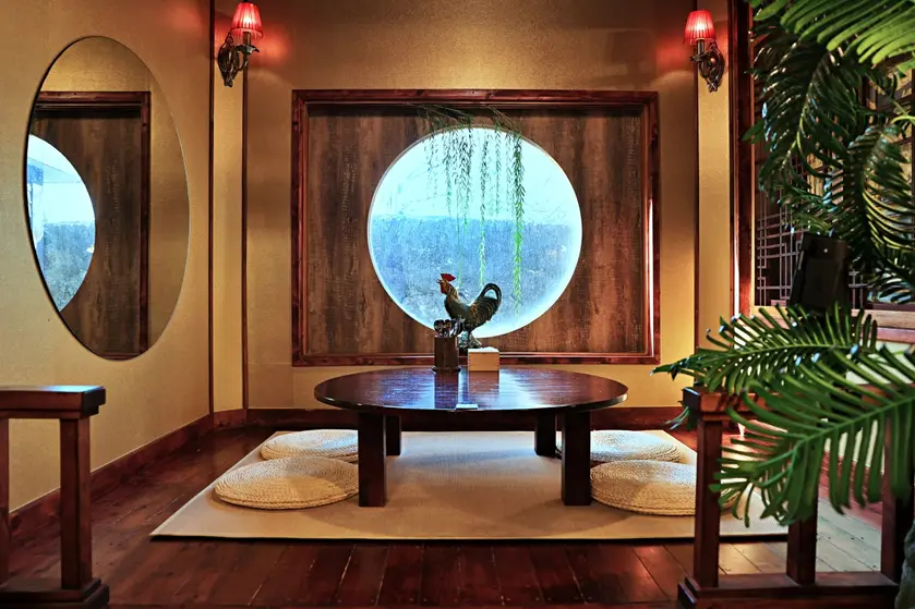 さまざまなテーマの座敷や壁画の装飾、テーブル席など、どの席でもこのお店ならではの特別な雰囲気を満喫できます。