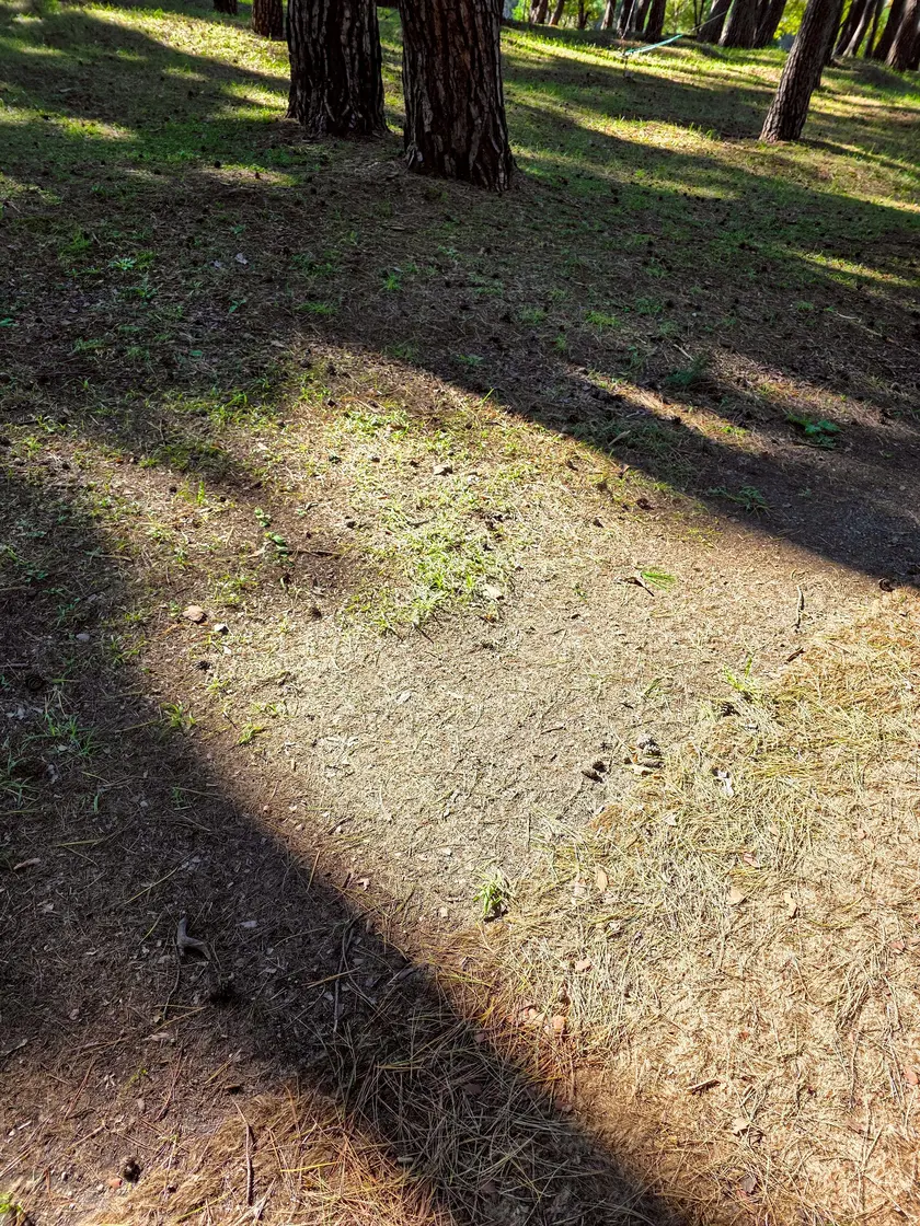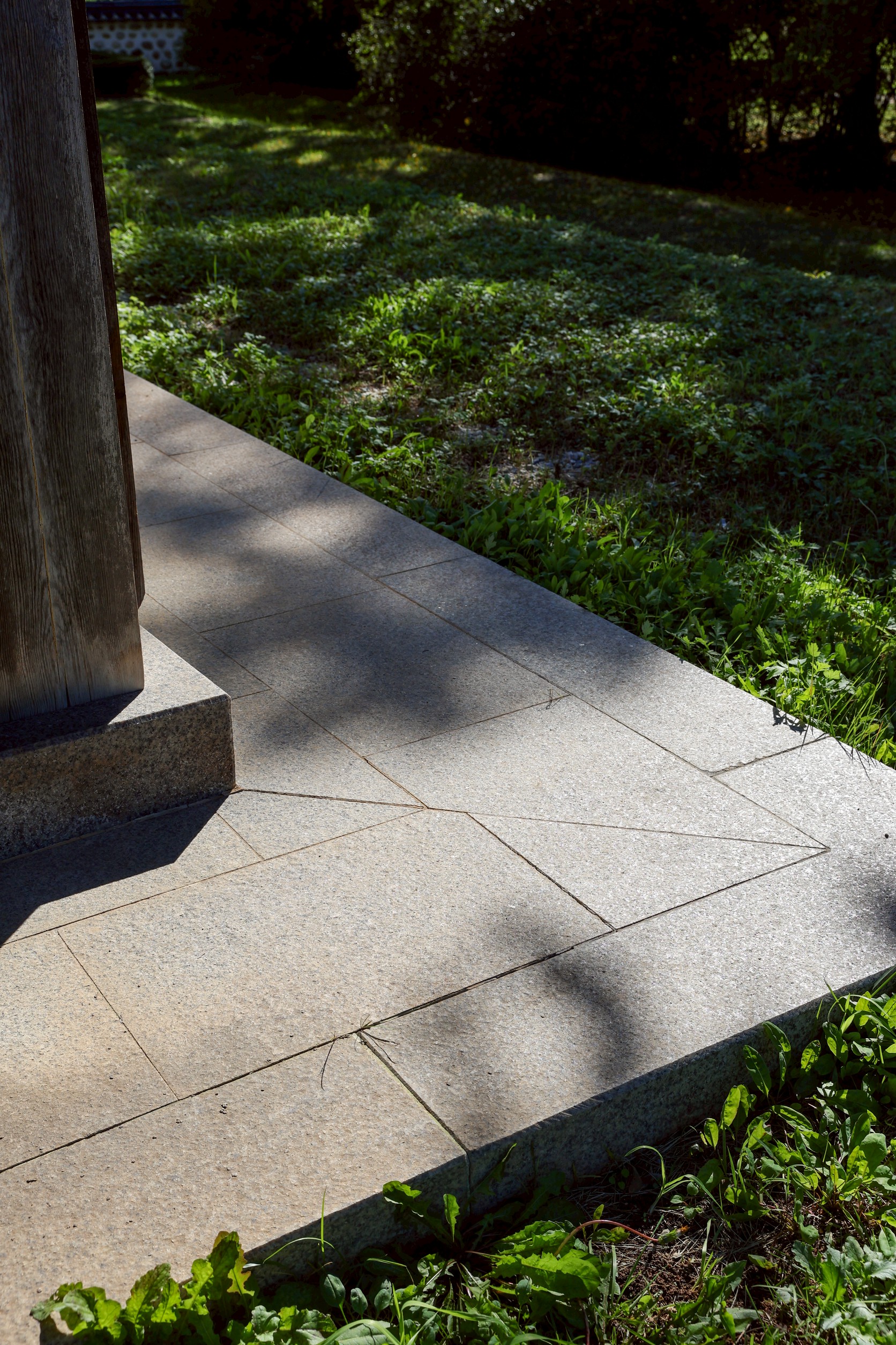 해가 기울자 난간의 그림자가 길어졌습니다.