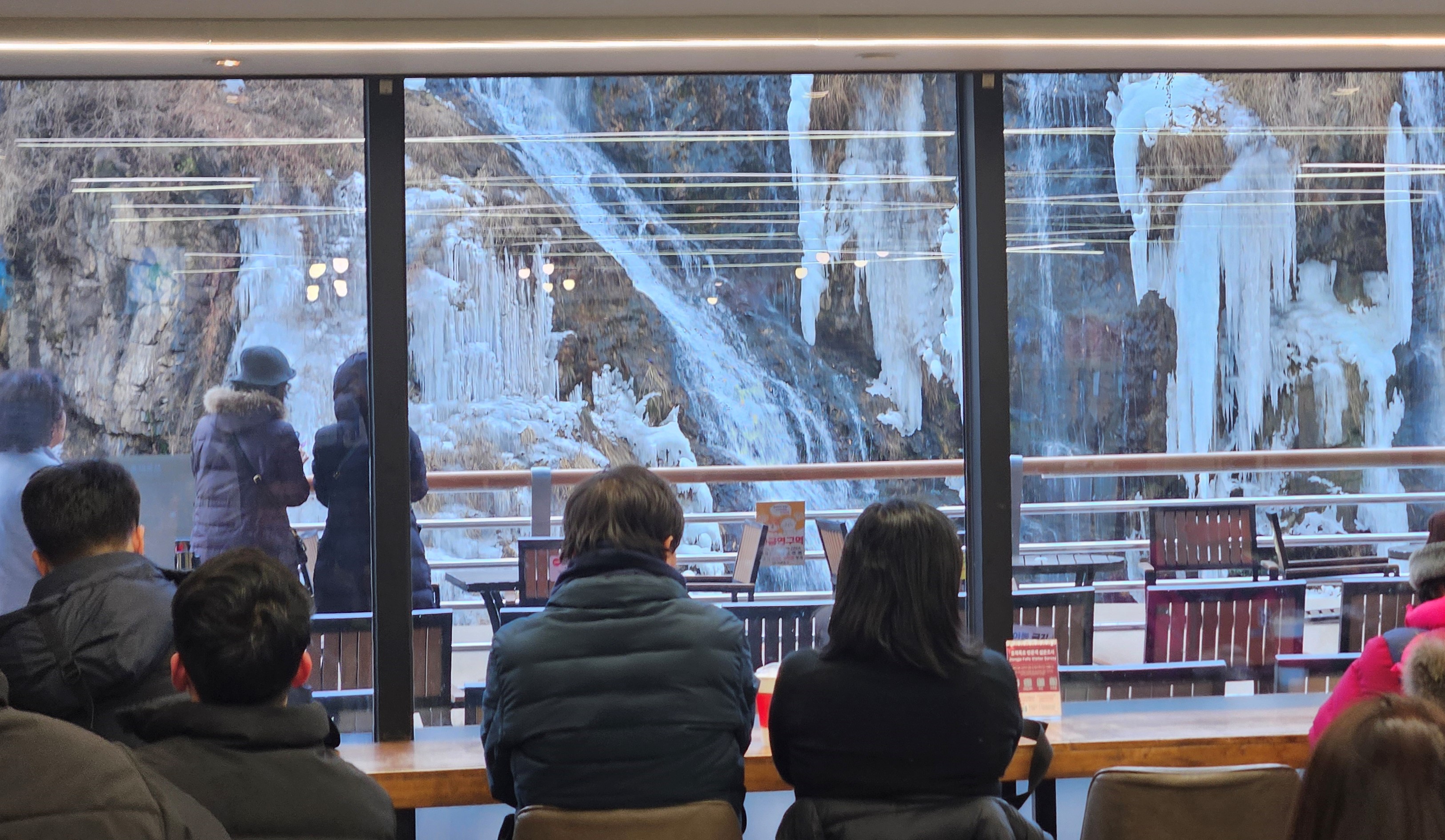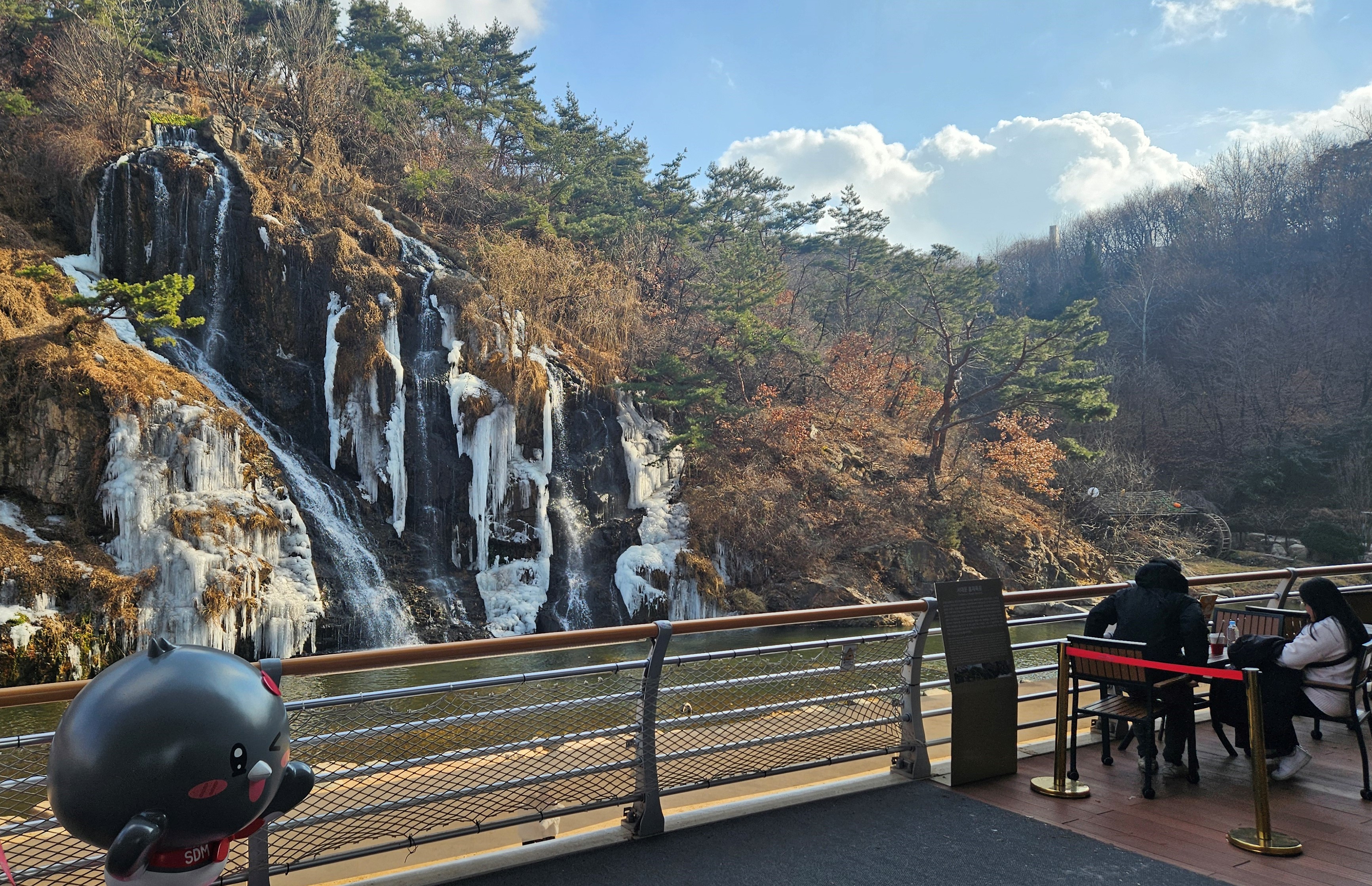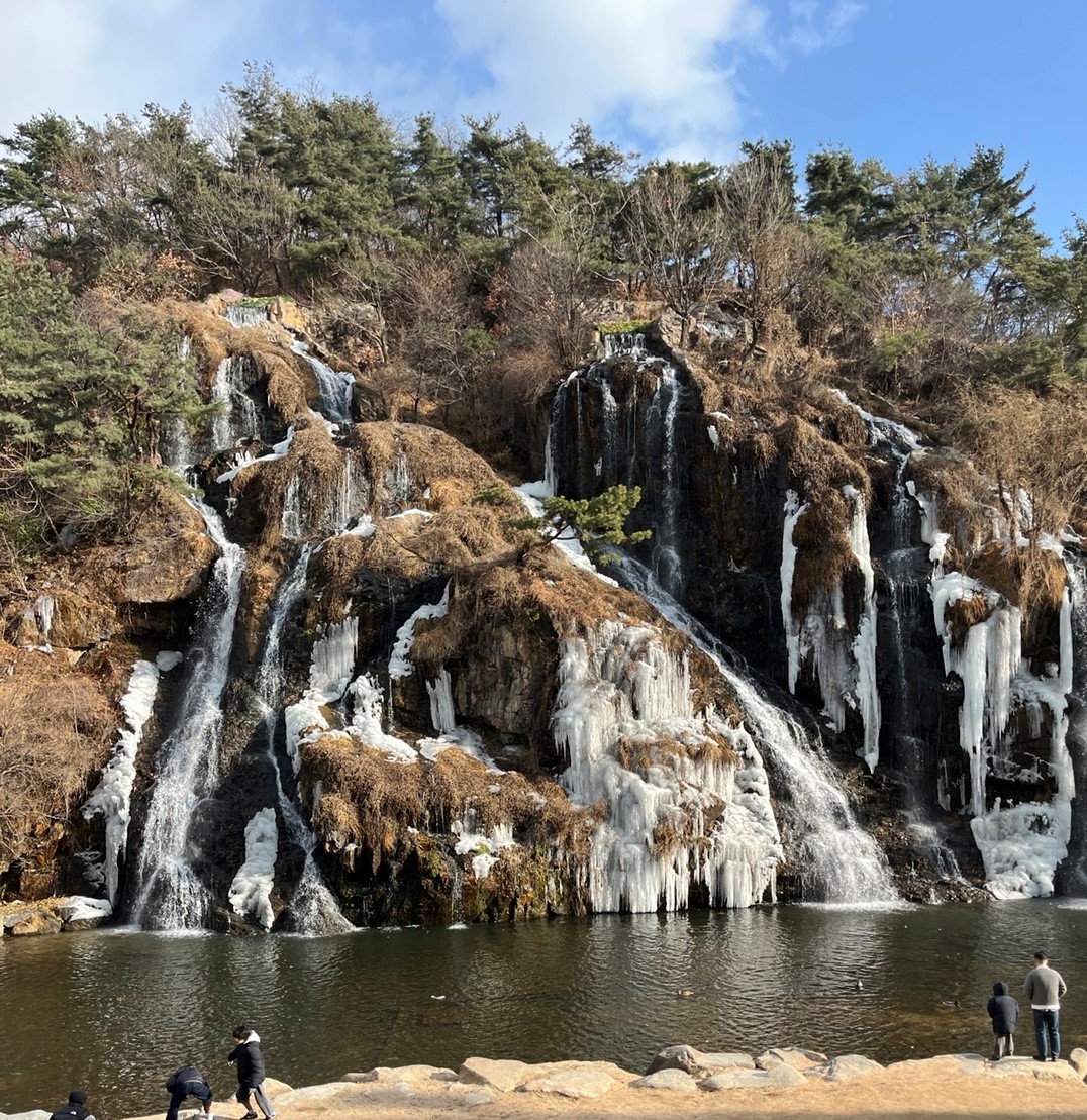 ソウルの1月は、日中でも気温がマイナスの日が多くあります。そんな日に訪れると、凍りついた滝の間から、溶け出した水が落ちている幻想的な姿を見ることができました。