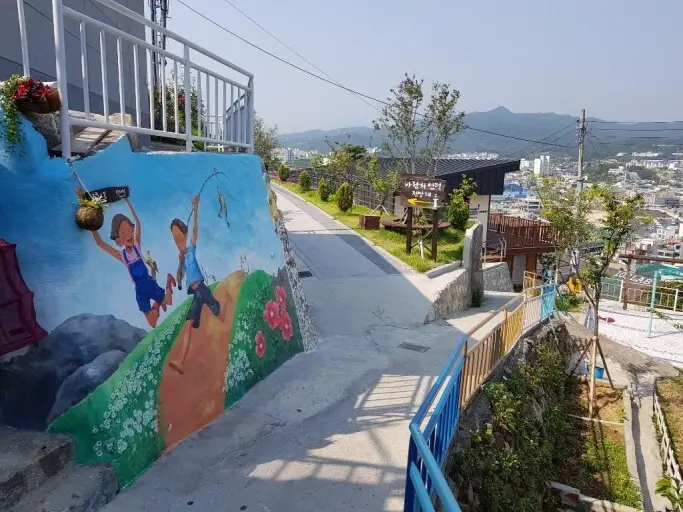 ノンゴンダルギム(壁画村)は東海(トンヘ)市の観光名所「墨湖(ムコ)灯台」の丘の斜面にある集落です。細い路地には可愛らしい壁画が描かれ、周辺の雰囲気や丘から良く見える海との調和も見事。