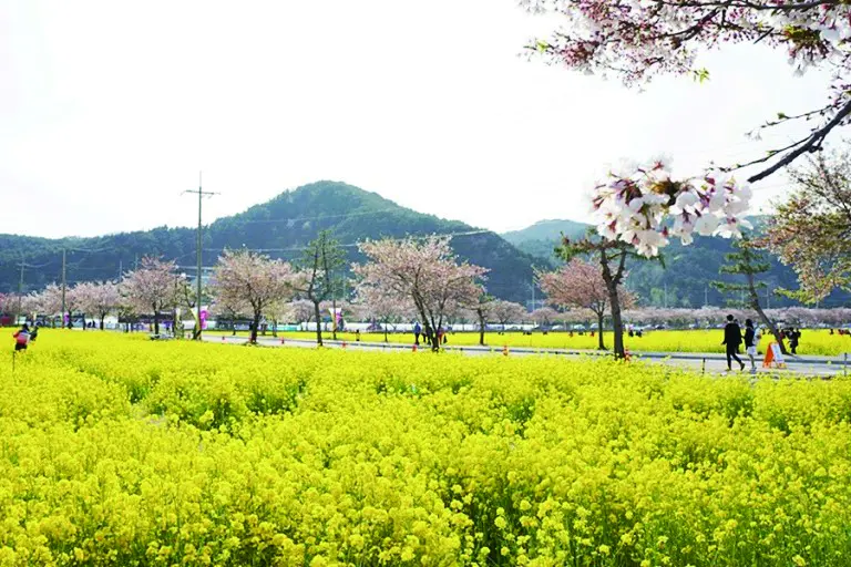 三陟孟芳(サムチョクメンバン)菜の花村は、国道沿いの桜並木道(4.2km)のそばにある集落の菜の花畑で、毎年4月になると祭りを開催しており、桜や菜の花、海を一度に楽しめるスポットです。※天候により見学不可の場合がございます