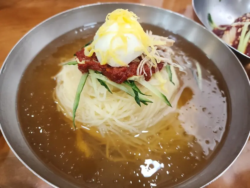 釜山の伝統料理の一つ、ミルミョン(冷麺)。今回訪れる店舗は、1974年から約50年の伝統料理の味を堪能できます。ミルミョンはつるつるとのど越しがよくさっぱりしていてランチにピッタリ!お店おすすめのマンドゥ(韓国の蒸し餃子)もご用意いたします。