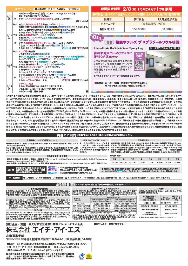 旅行の詳しいスケジュール、お申込み、お問い合わせはエイチ・アイ・エスまで