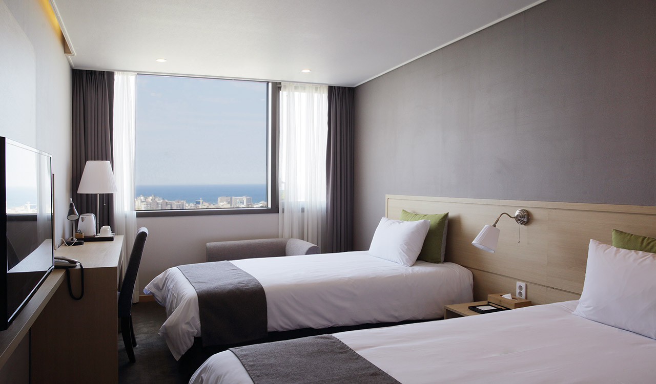 済州市内の済州支庁の近くにあり、近辺にはコンビニ・飲食店も多くあります。施設内はレストランやカフェもあり、モダンなインテリアで仕上げられた寛ぎのある落ち着いたデザインの客室はバスタブ付きで、もちろんフリーWIFIが利用可能。心地よくリラックスしてお過ごしいただけます。