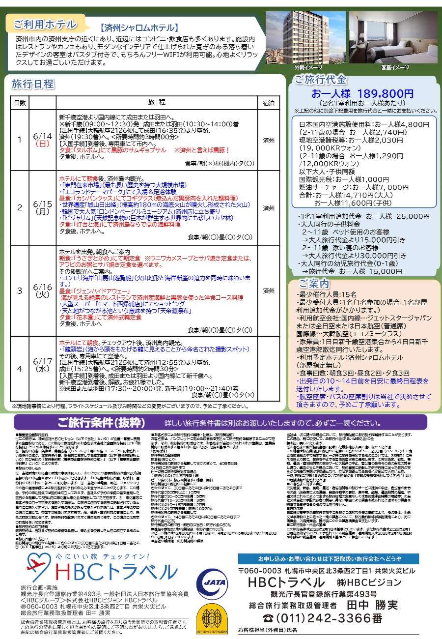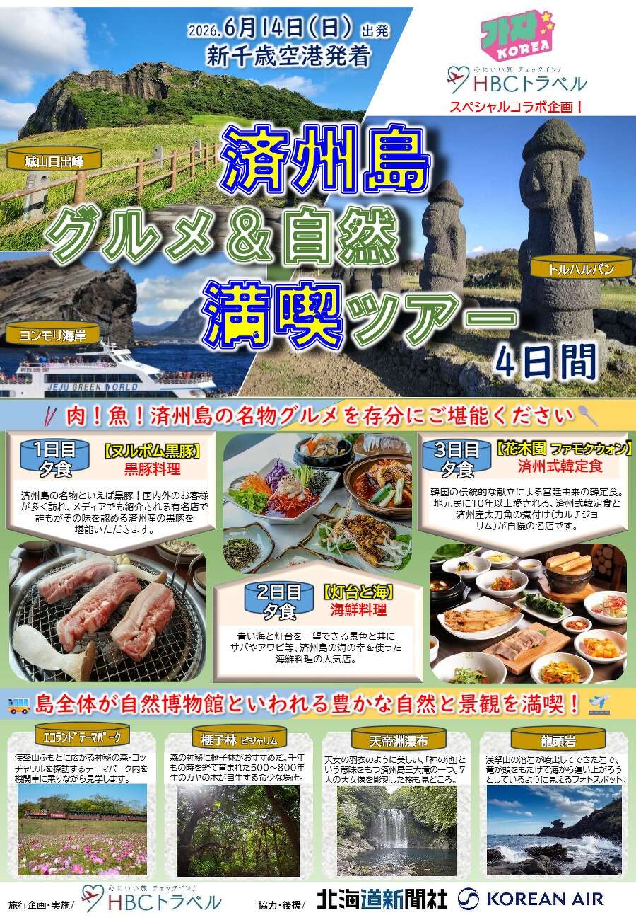 【カジャ!コリア×HBCトラベル】済州島グルメ&自然満喫ツアー4日間