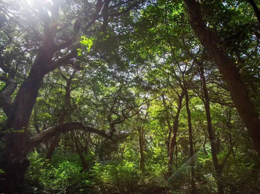 森の神秘に榧子林がおすすめ。千年もの時を経て育まれた500~800年生のカヤの木が自生する稀少な場所。