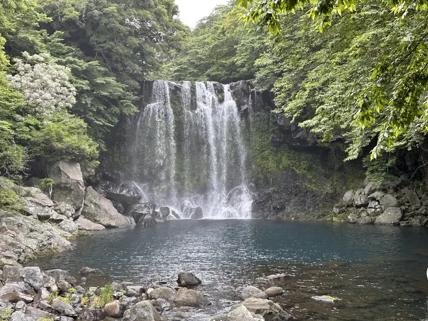天女の羽衣のように美しい、「神の池」という意味をもつ済州島三大滝の一つ。