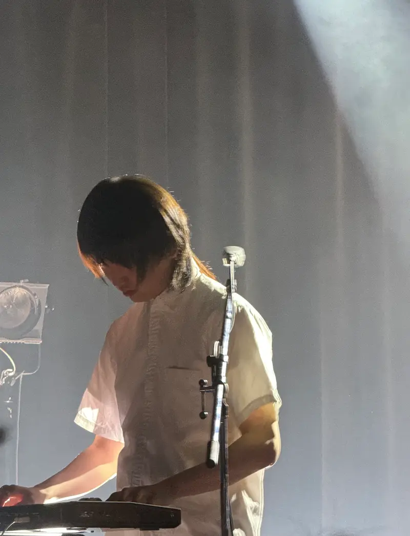 前日の「betcover!!」がパワフルな公演を見せたとすれば、この日の「maya ongaku」の音楽は、スタンディングで聴いていたにもかかわらず、沖縄の穏やかな海が見えるカフェでハンモックに横たわっているような感覚を覚えた。