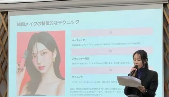 まずは、日本と韓国のメイクの特徴をわかりやすく講義。