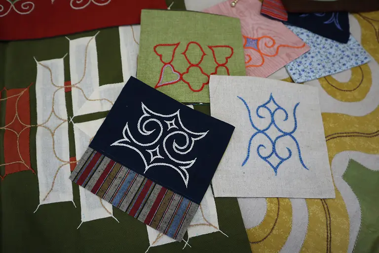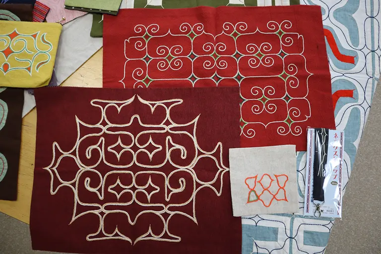 私がアイヌ文様を学び始めた頃は題材として着物を作る機会が多かったのですが、今は日常的に着物を着る機会って少ないので、なるべく暮らしの中で役に立つもの、例えば、コースターやランチョンマット、バッグを題材としてアイヌ文様刺繍の作り方を教えています。
