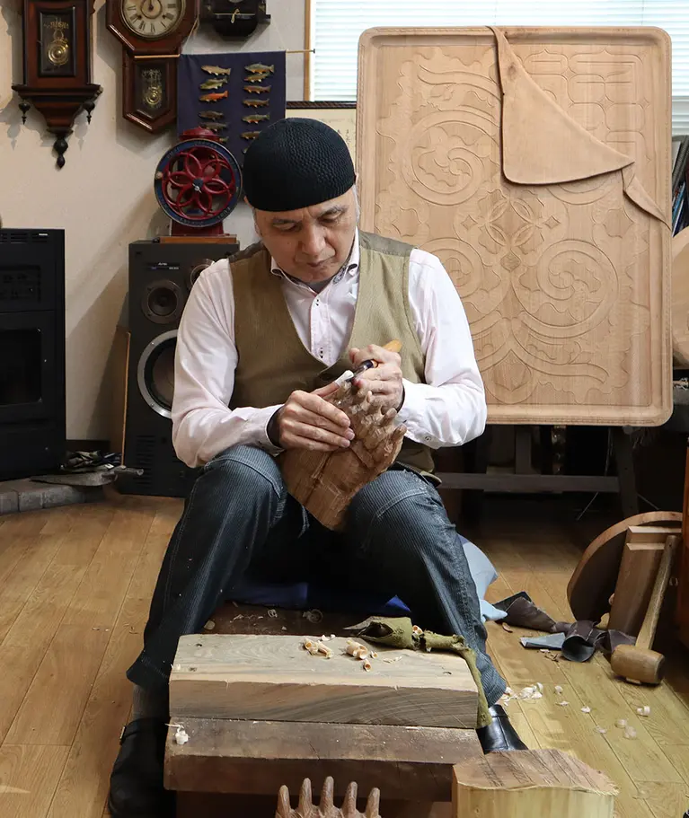 幼少の頃から父が木彫をする姿を見て育ちました。特に私が高校生の頃は北海道観光ブームの最盛期ということもあり、父は日々木彫を作っていました。職人の仕事を見て育ったということもあって、木彫のやり方は、子供の頃から見よう見まねでなんとなく理解していたような気がします。