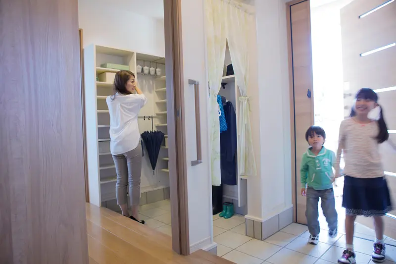 ④土間から回遊動線にすると帰宅後すぐに収納できる