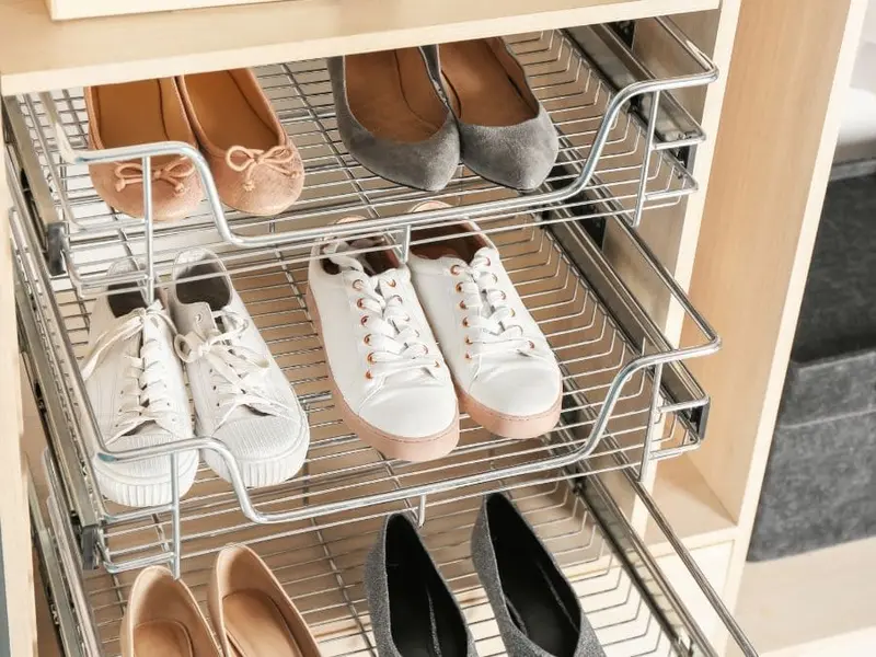 シューズクローゼットに物干しポールを設置すれば、床が濡れるのを気にせずに干せて便利です。