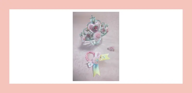 ティアラ、ブレスレット、リングにリボンやキラキラパーツで可愛くデコレーション。お姫様セットがあればいつでもプリンセス。