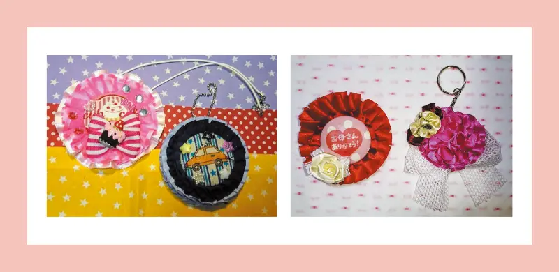 好きなリボンと布を選んでまるで勲章のようなロゼットを作ろう。ブローチかキーフォルダーを選べます。