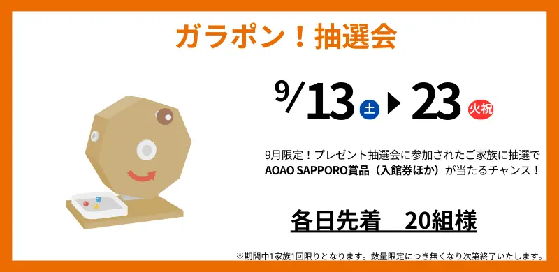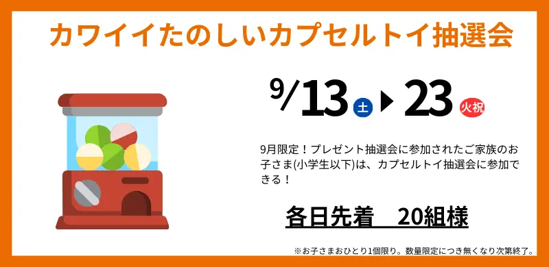 9/1(月)~9/30(火)は毎日プレゼント抽選会を開催!