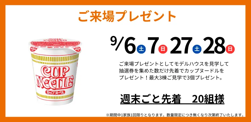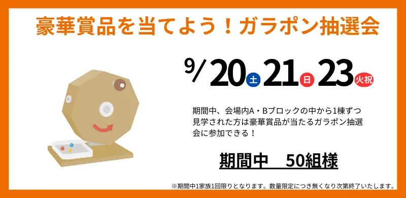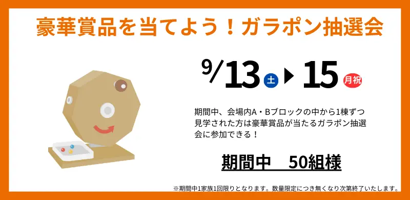 モデルハウス1棟の見学につき、抽選券を1枚お渡しいたします。
