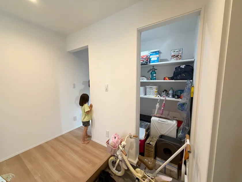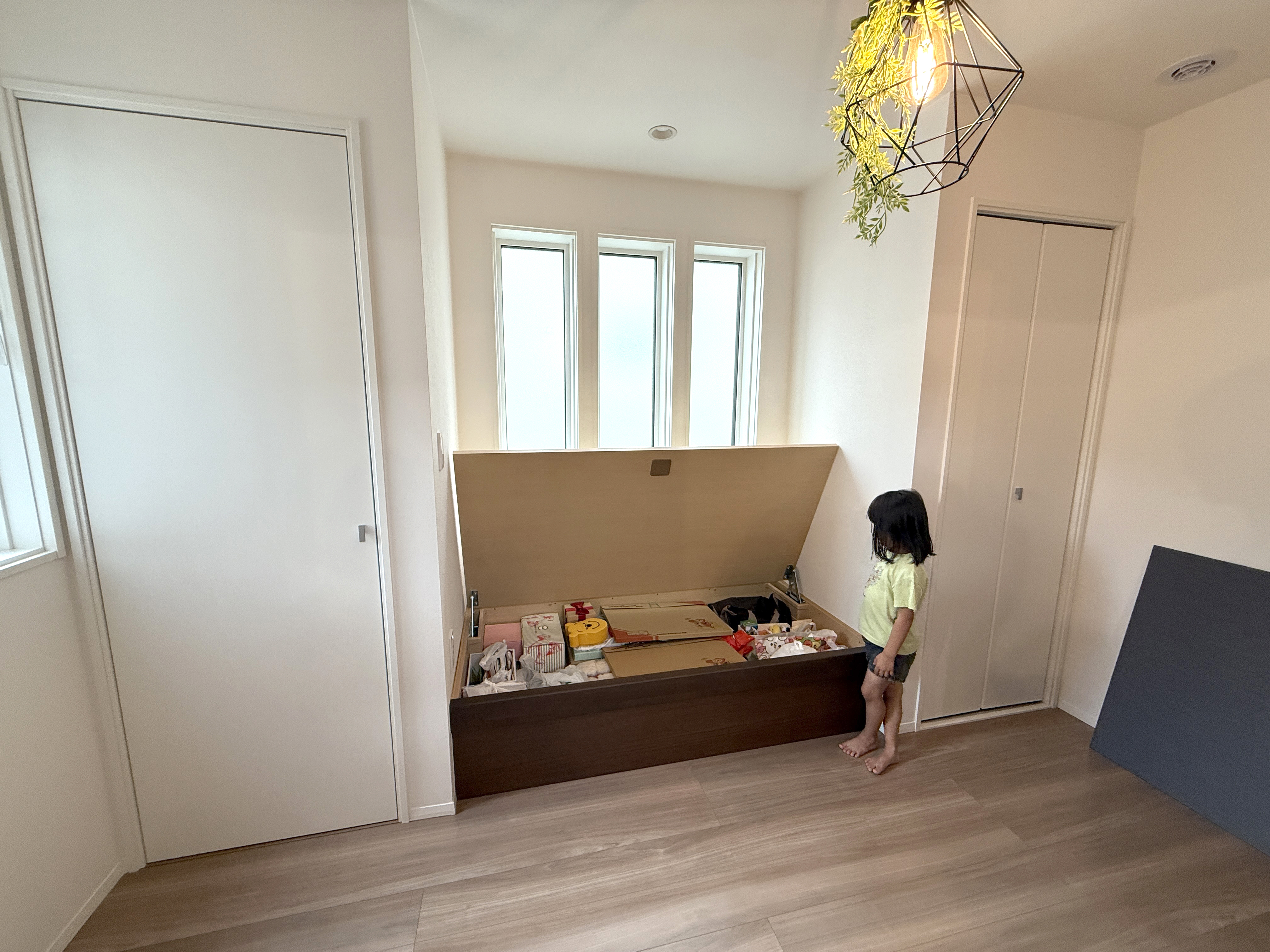 たいてい子ども部屋って2階にありますけど、子どもが小さいうちは1階で遊ばせることが多いので、どうしても1階にキッズスペースが欲しくなるんです。リビングに子ども部屋があると、友達が来ても子どもたちはそこで遊んで、大人はリビングでおしゃべり。すぐ隣にいるから様子も見られて安心なんです。ママ友からも喜んでもらえています。