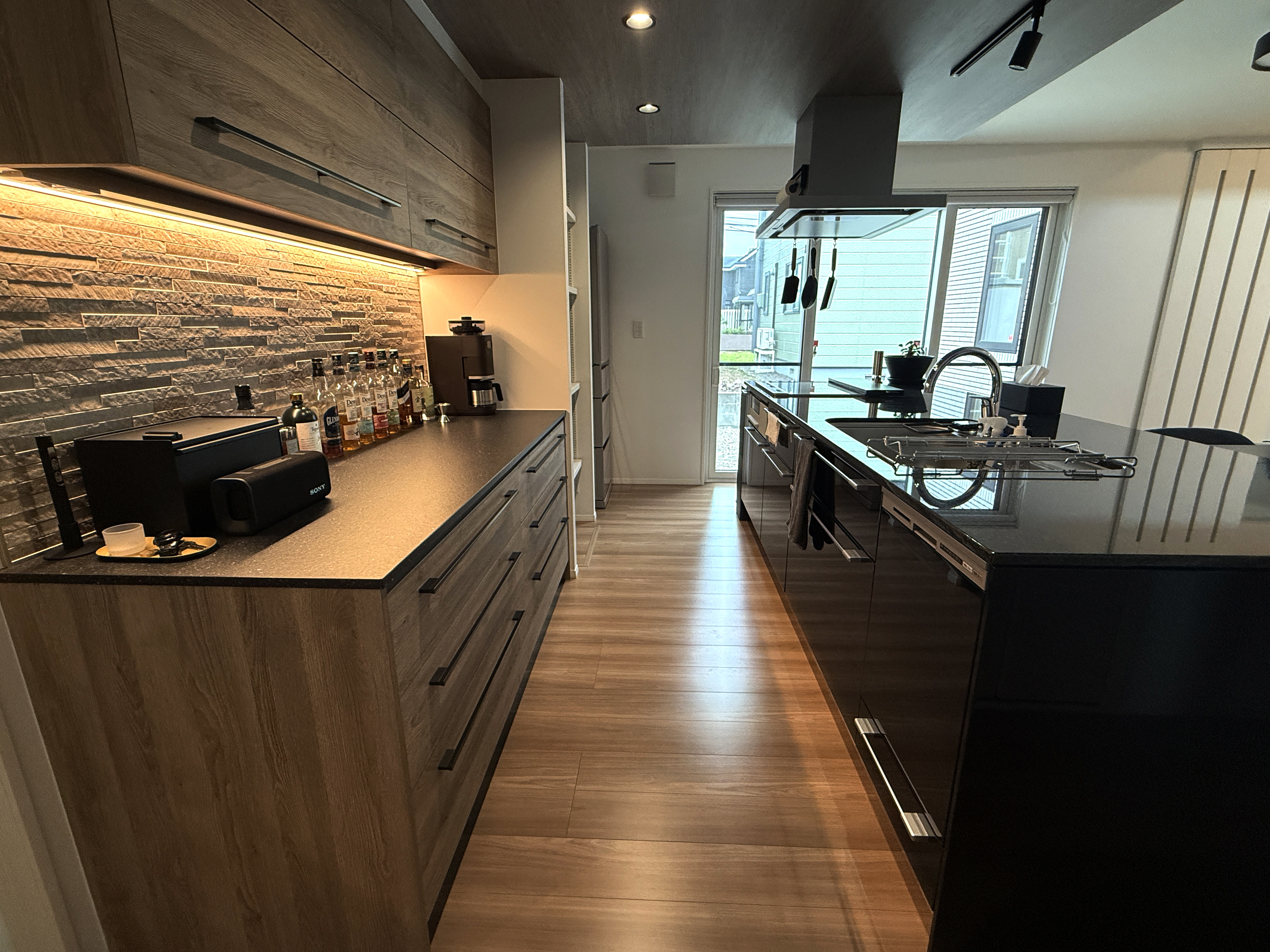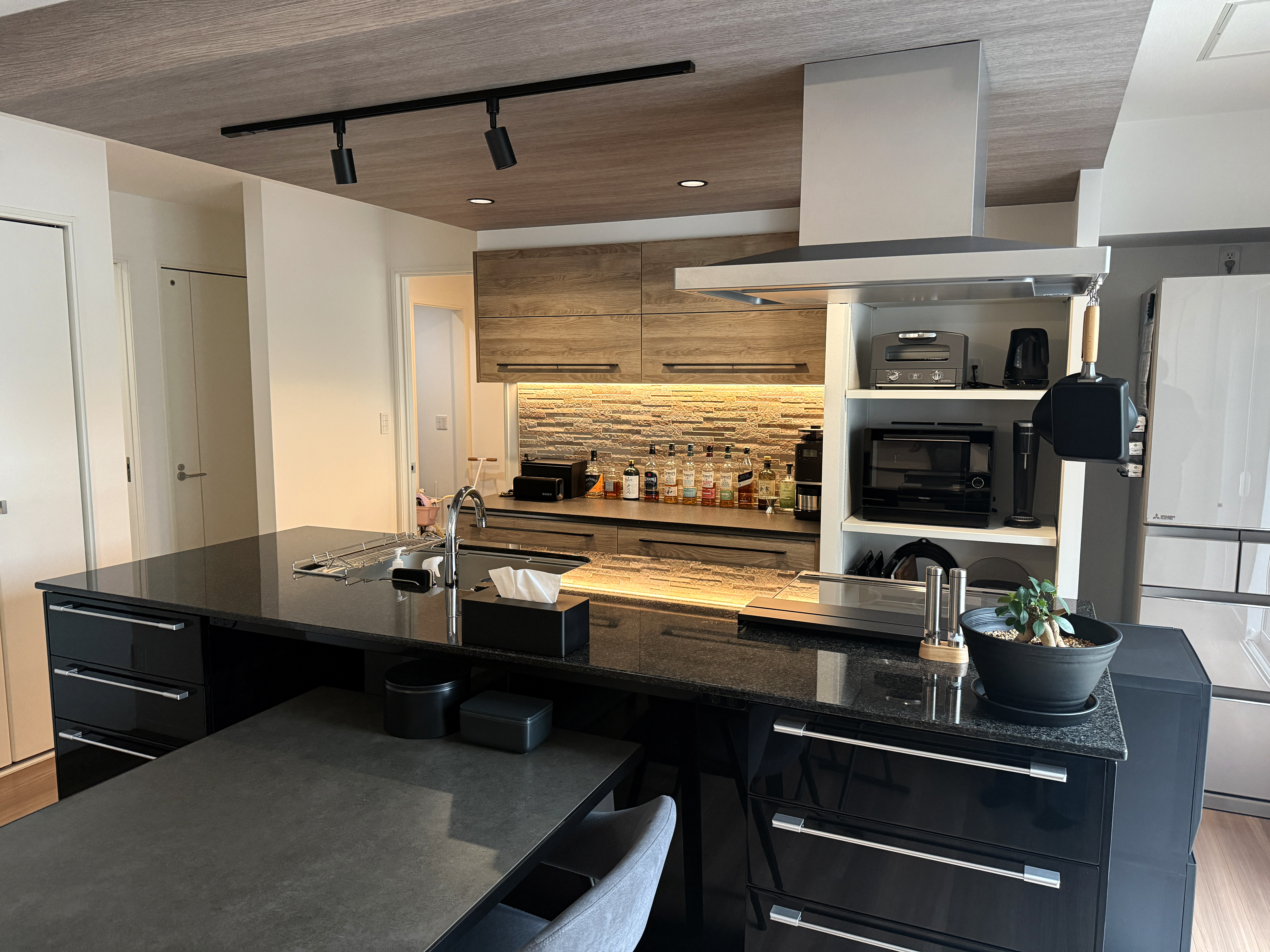 実際に完成したキッチンはとても使いやすく、動線もスムーズ。調理や片付けの効率が上がっただけでなく、リビングに自然と会話が広がるようになりました。