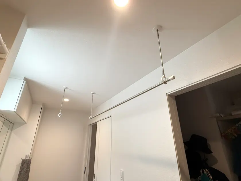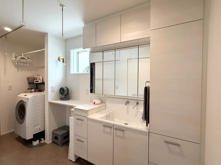 さらに、洗濯物を干すスペースも効率よく使えるように、物干しの位置を数センチ単位で設計しました。毎日の家事や生活動線がスムーズになるよう工夫できたのは、本当に良かったと思っています。