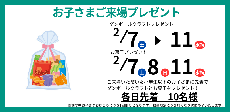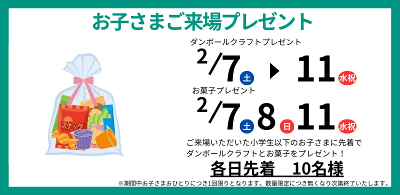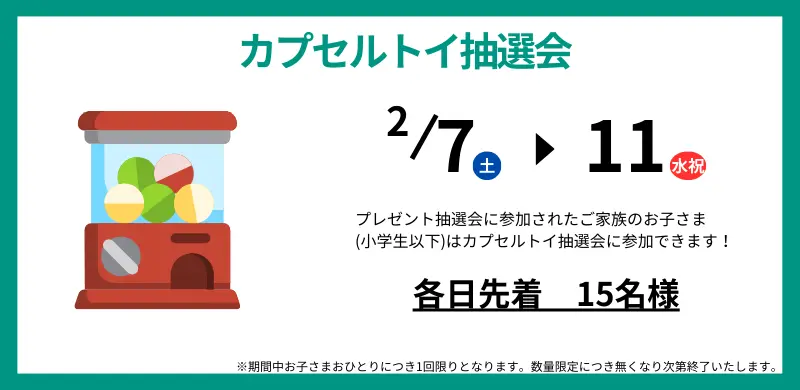 2/1(日)~2/28(土)は毎日プレゼント抽選会を開催!