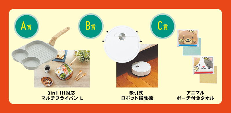 | A賞 | 3in1 IH対応マルチフライパン L | 期間中 10本 |