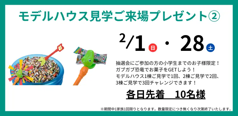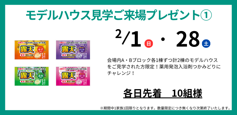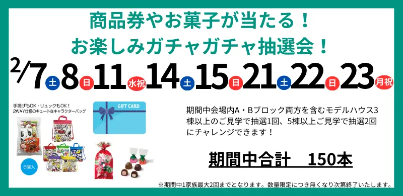 モデルハウス1棟の見学につき、抽選券を1枚お渡しいたします。