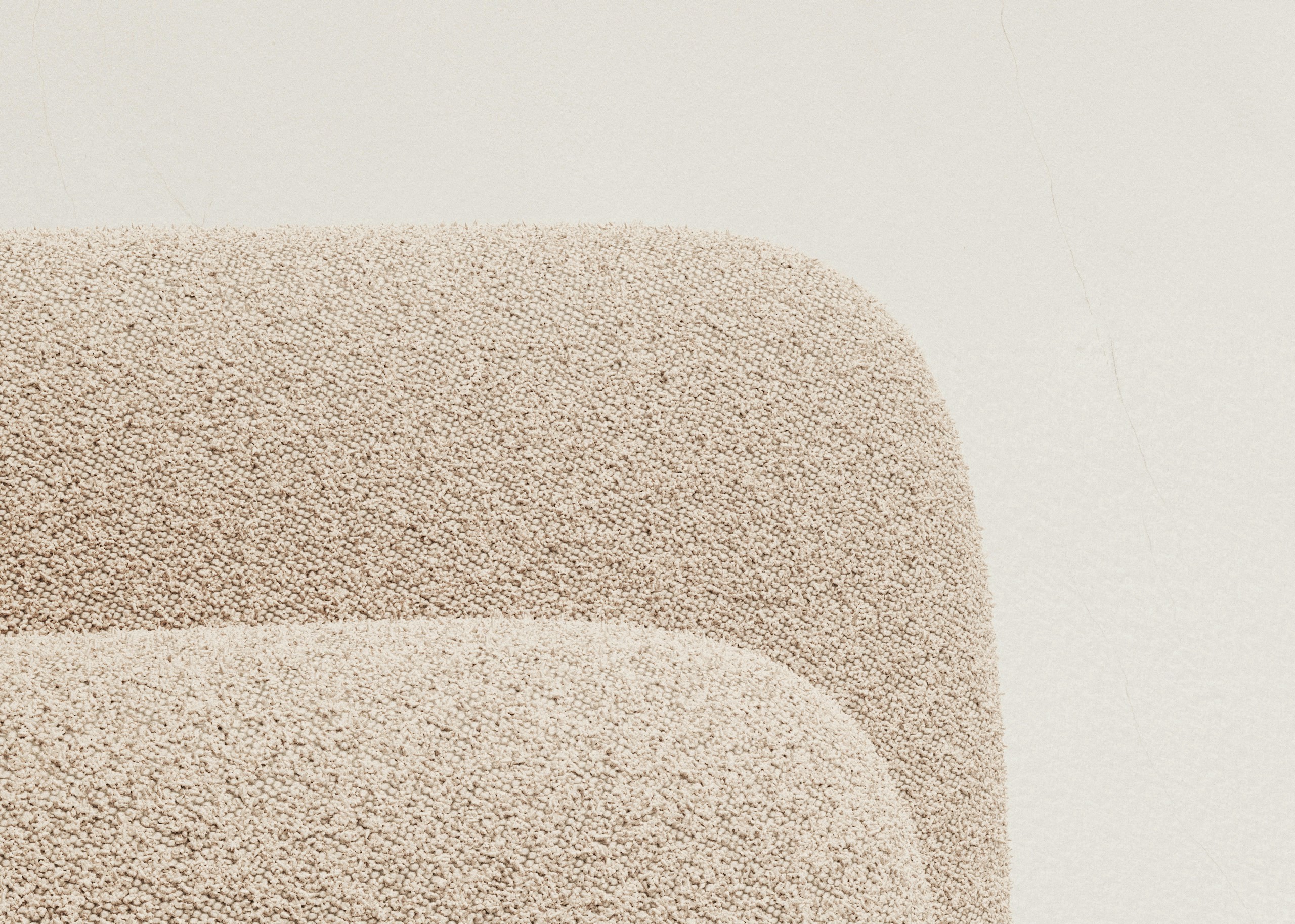 家具に使われるブークレ素材とは、小さな輪ができた毛が不規則にあり凹凸が感じられる素材のことです。見た目と触り心地がもこもこで柔らかく、冬のインテリアと相性の良い素材です。
