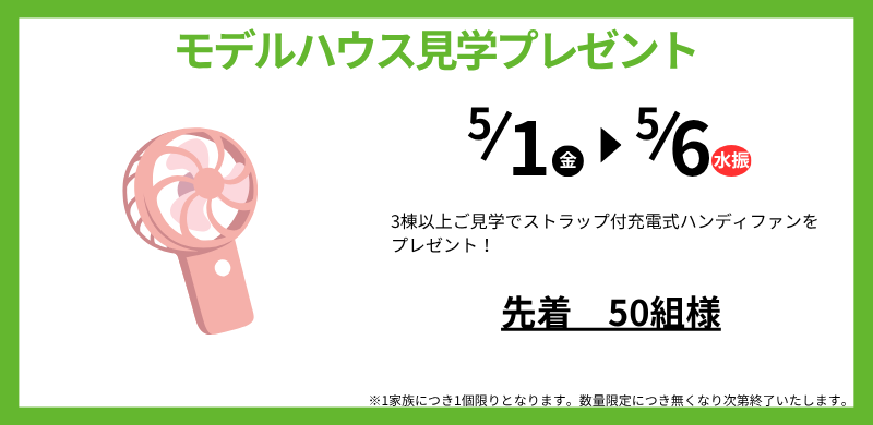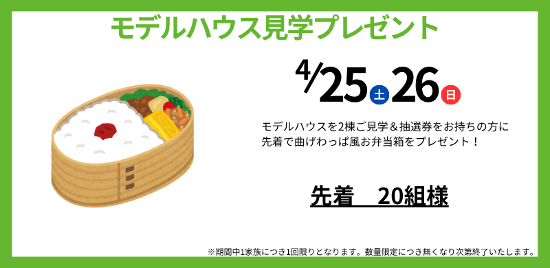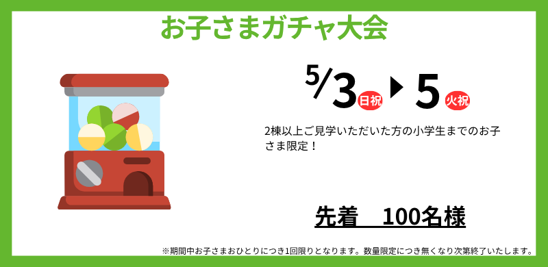 モデルハウス1棟の見学につき、抽選券を1枚お渡しいたします。