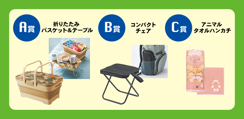 | A賞 | 折りたたみバスケット&テーブル | 期間中 5本 |