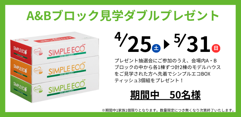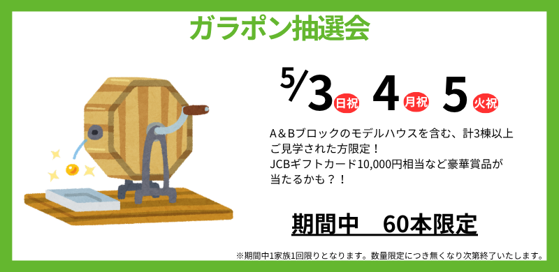 モデルハウス1棟の見学につき、抽選券を1枚お渡しいたします。