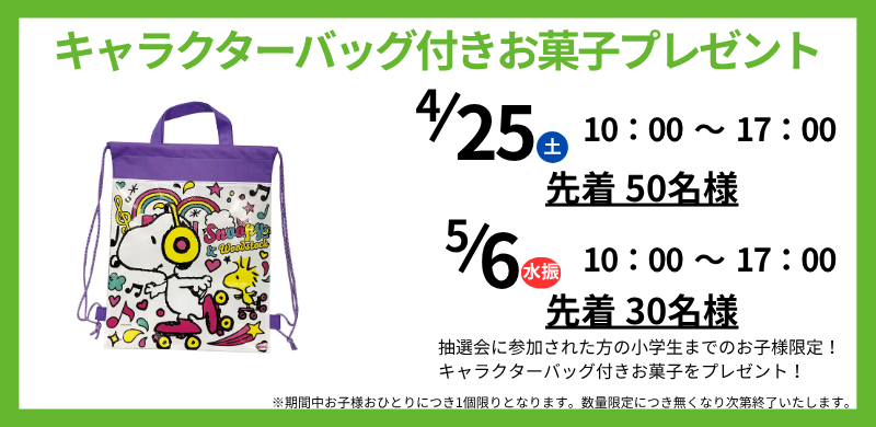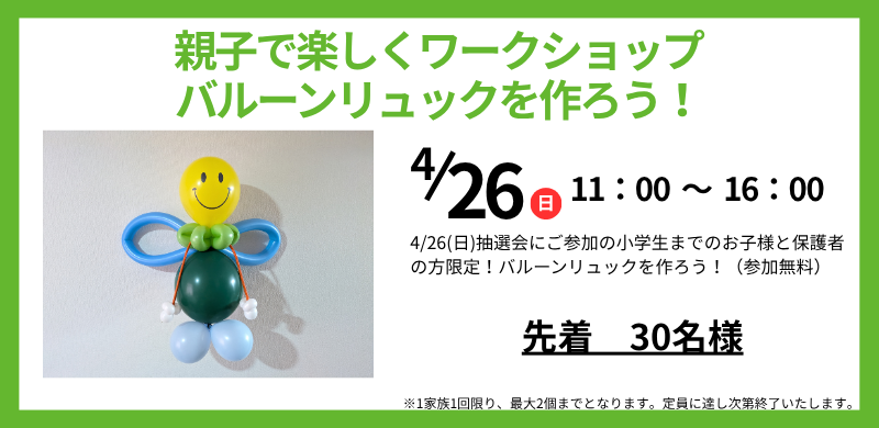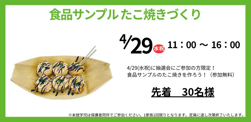 4/25(土)~5/31(日)の期間中、1家族1回限り・数量限定。