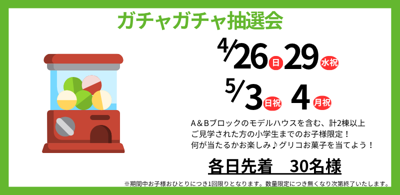 4/25(土)~5/31(日)は毎日プレゼント抽選会を開催!