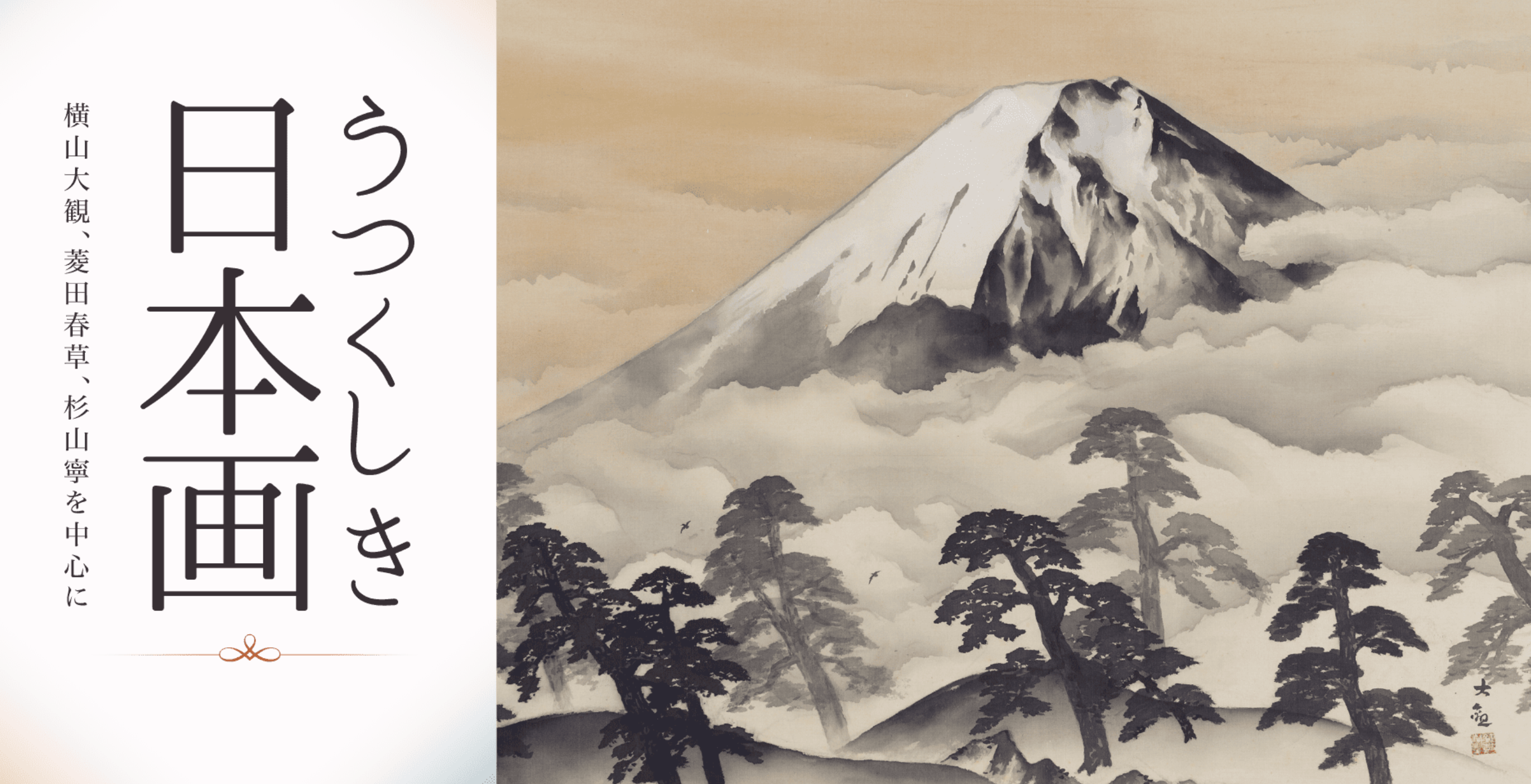 本展では、岡山県井原市に本社を置くシーピー化成株式会社が所蔵する日本画コレクションより、横山大観(1868-1958)、菱田春草(1874-1911)、杉山寧(1909-1993)といった各時代を代表する著名な画家たちの作品を紹介し、時代とともに歩んできた日本画が織りなす美しく心温まる世界をお楽しみいただきます。